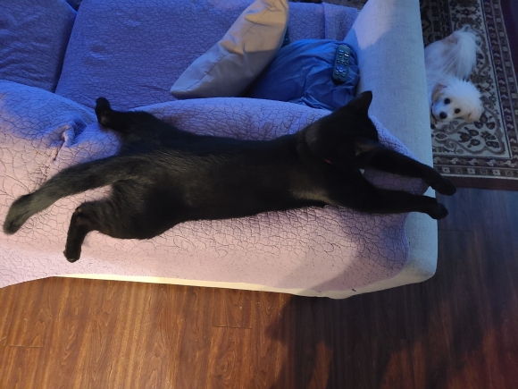 Human, my name is Hiei, and right now, I'm in peak relaxation mode. This couch is *divine*, you know? My ultimate dream day would involve a few more ear scratches, maybe a sneaky extra treat or two (you know I love my food!), and then perhaps a quick adventure around the neighborhood before a good snuggle session. Oh, and seeing my dog pal happy, of course!