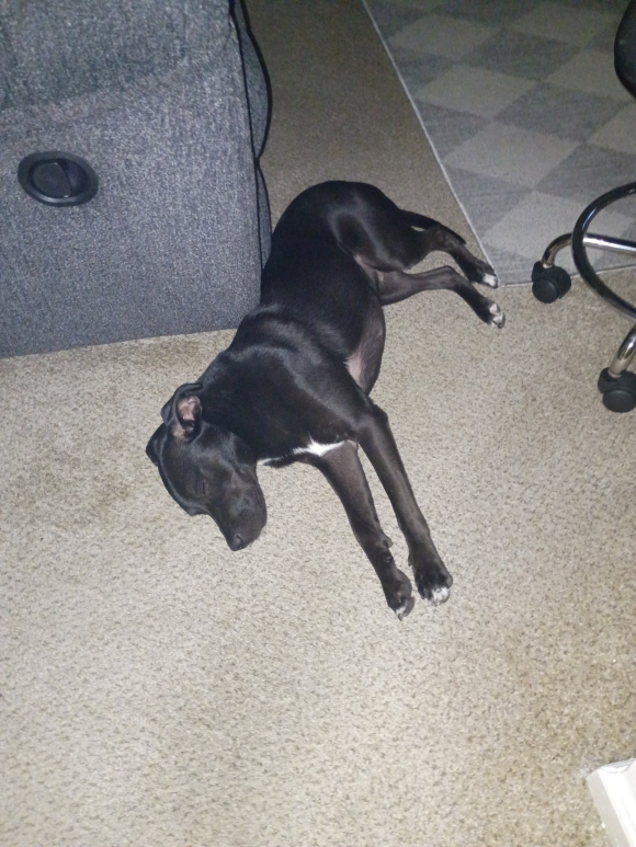 (Yawnnnn) Oh, hello there! Charlie Boy here, enjoying the coziest nap. This carpet is just *perfect* for snoozing, and I've got all my favorite furniture for company. But you know what would make this even better? A gentle scratch behind my ears when I wake up, and maybe a tiny, *tiny* piece of that yummy human food you're probably eating. Love you, my human!