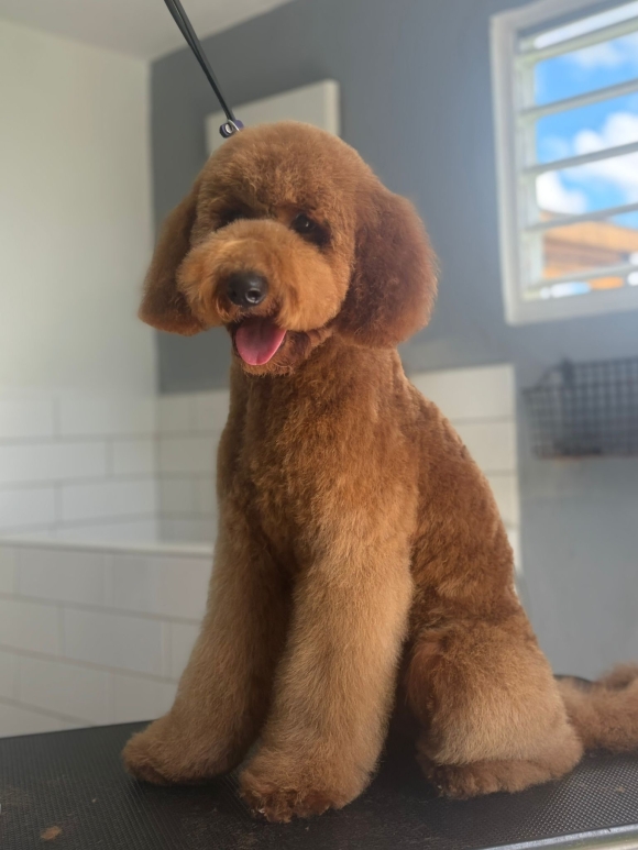 Oh, Owner, I'm Luna, your 0-year-old Goldendoodle Mini girl! Looking at my portrait makes me feel so happy and loved. My fur is all fluffy and perfect, just like you make it! I'm feeling cozy and relaxed. Could we maybe have a little playtime with my squeaky toy later, and perhaps a yummy treat for being such a good girl? You're the best!