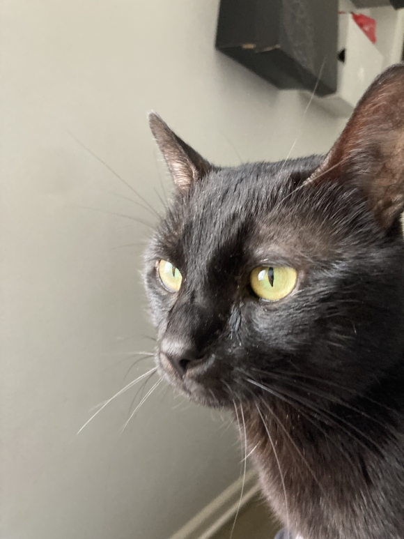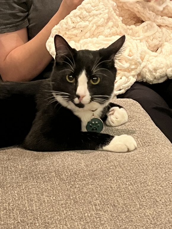 *Purrrrrrr.* Oh, hello there! It's me, Hendrix! I see you looking at me. My green eyes are extra sparkly today, aren't they? You're my favorite human, Hendrix! Since you're so wonderful, could you maybe give me some of those yummy treats? Or perhaps a good head scratch behind my ears? I've been a very good boy, always watching over you. *Mrow!*