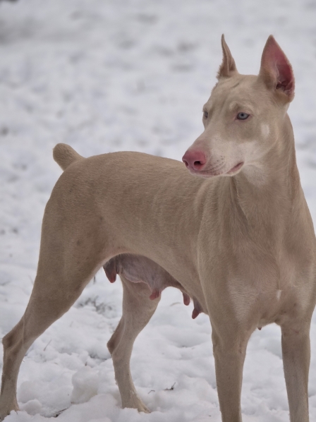My tail gives a little quiver, a secret dance in the cold. Oh, my dear human, this snow is so pretty, but it tickles my nose! See how pink it is? My big, pointy ears hear everything, but right now, all I hear is my tummy grumbling. Could we maybe, just maybe, go inside soon? Perhaps with a warm blanket and a little scratch behind my light blue eyes? I promise to be the bestest Echo you've ever known.