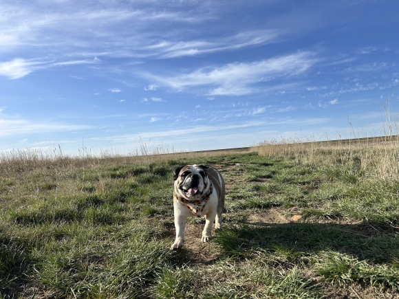 WOOF WOOF! That's ME, Sway Morris, the handsome Pitbull, zoomin' on the grass! Look at me go! *pant pant* The sun feels so good! But you know what would make this perfect, my favorite human Precious Morris.