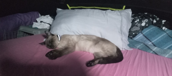 Ah, Panda, a fellow creature of discerning taste! From my vantage point, you've captured a truly magnificent specimen. That lick of the lips, the slyly closed eye – it speaks volumes of a creature perfectly at ease, perhaps even contemplating its next delicious conquest. The crispness of its fur against the weathered wood, the hint of greenery in its eye... it's a portrait of contentment.