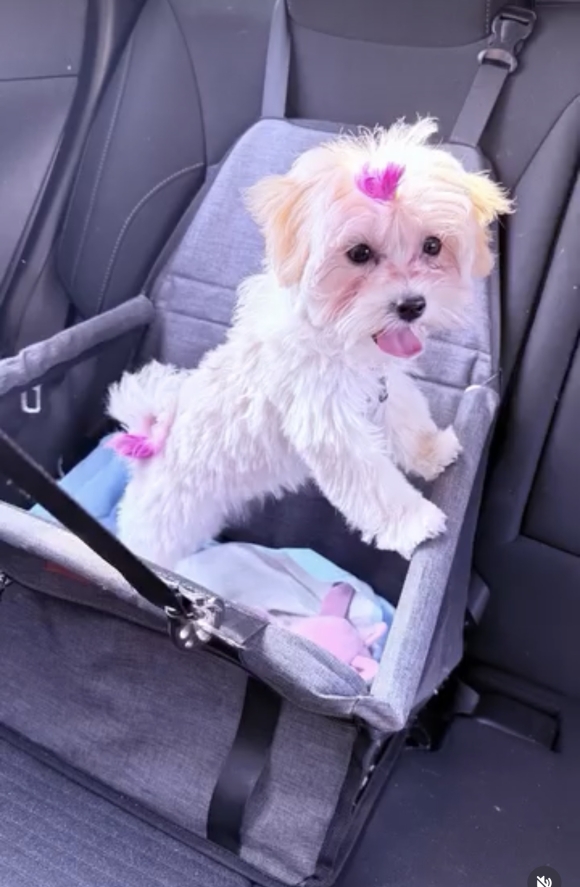 Oh boy, oh boy, oh boy! 🐾 Look at me, Luna, all dressed up for an adventure! This car seat is so comfy, just like a cloud. And that little bunny toy? He's coming too! Can we go somewhere fun, pleeeease? Maybe the park? Or the pet store? My tail is wiggling with excitement just thinking about it! I promise to be the bestest girl for you! 🥰