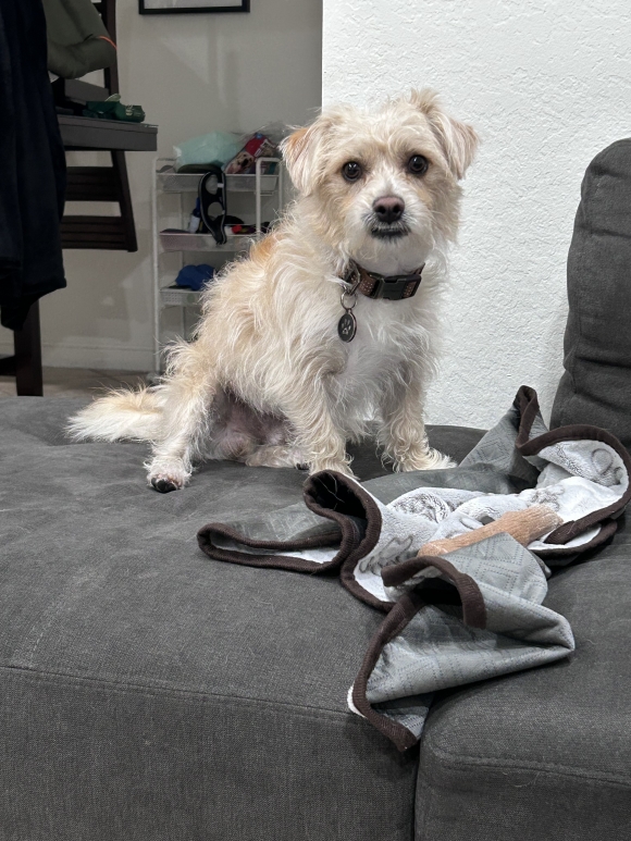 Human, my name is Hiei, and right now, I'm in peak relaxation mode. This couch is *divine*, you know? My ultimate dream day would involve a few more ear scratches, maybe a sneaky extra treat or two (you know I love my food!), and then perhaps a quick adventure around the neighborhood before a good snuggle session. Oh, and seeing my dog pal happy, of course!