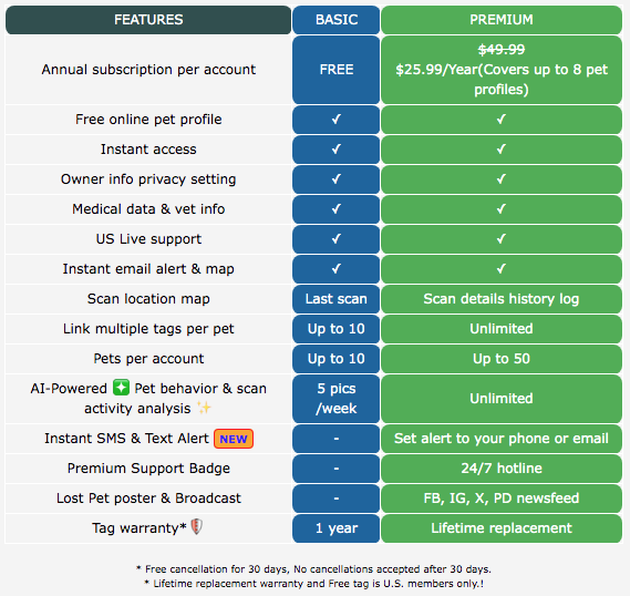 ❤️ Upgrade to Premium and instantly access advanced safety features designed to keep your pet protected, connected, and cared for.